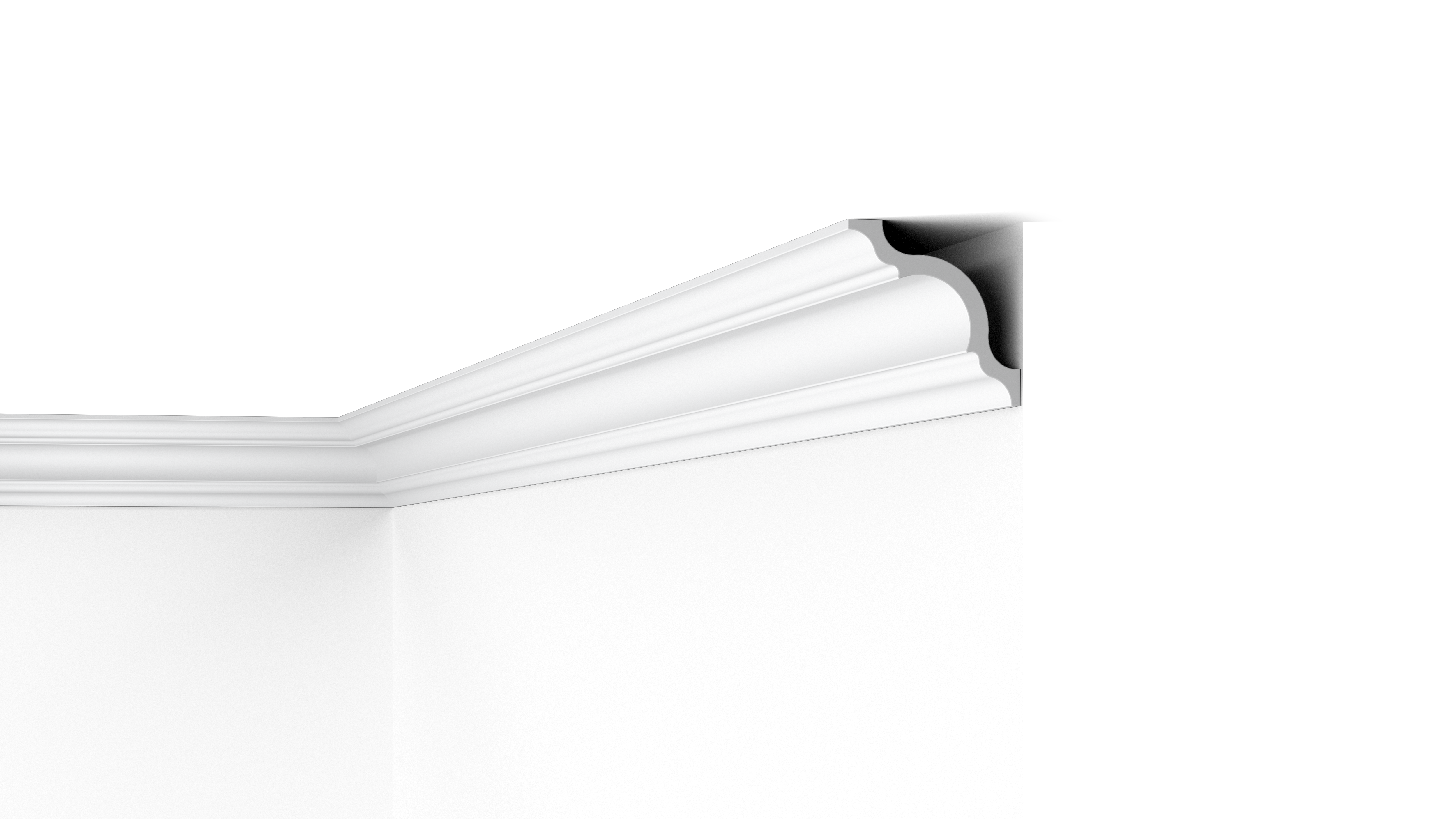 Die A NOMASTYL® Deckenleiste wertet jedes traditionell eingerichtete Interieur auf. Eine Kombination aus sanften Kurven und Linien erzeugt Schatten, die einem Raum eine zusätzliche Dimension verleihen. Die A NOMASTYL® ist aufgrund des feuchtigkeitsbeständigen Materials ideal für Nass- und Feuchträume.