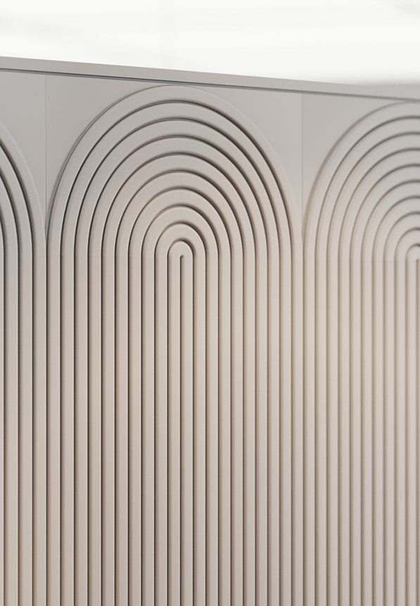 Das Wandpaneel CANELÉ L ist 300 mm breit und 2 m lang. Diese Abmessungen werten das lineare Design auf, reduzieren die Anzahl der bei der Verlegung erforderlichen Fugen und erleichtern die schnelle Montage mit ADEFIX® PLUS Kleber. Das Paneel CANELÉ L ist grundiert und bereit für den Endanstrich.