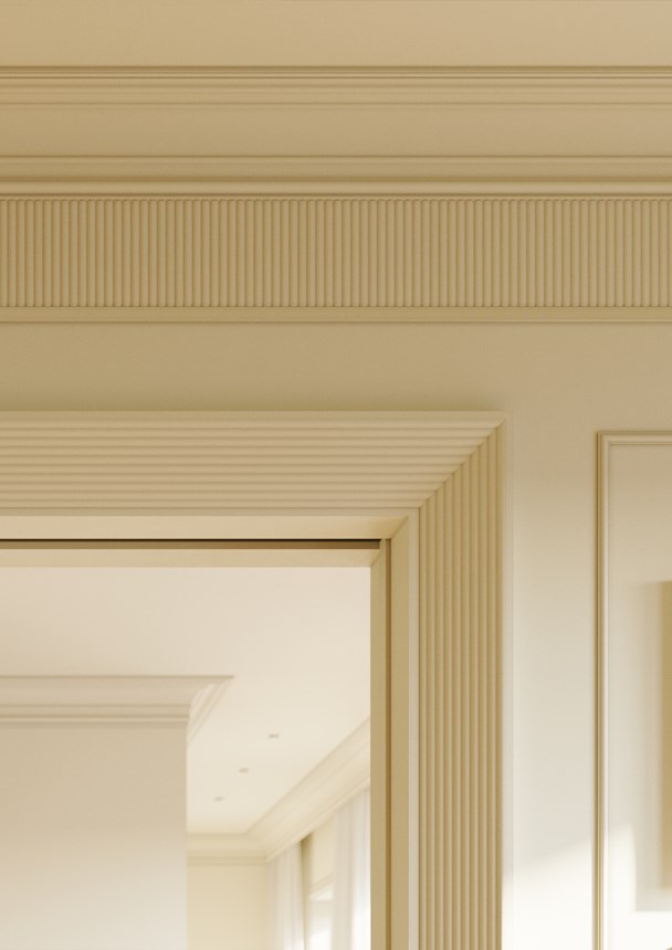 Das Paneel CANOPÉE S in der Ausführung 2600 mm besteht aus hochdichtem Polystyrol (HDPS) und gewährleistet eine hervorragende Stoß- und Feuchtigkeitsbeständigkeit. Damit eignet es sich für den Einsatz in allen Arten von Innenräumen, einschließlich Badezimmern und Küchen. Jedes Paneel wird während der Produktion grundiert, sodass es sofort in jeder beliebigen Farbe gestrichen oder lackiert werden kann. Für eine sichere und dauerhafte Montage empfehlen wir die Verwendung des Klebstoffs ADEFIX® PLUS. Die Paneele sind so konzipiert, dass sie ohne Klebefugen perfekt aneinanderpassen und eine saubere und harmonische Oberfläche bilden.
