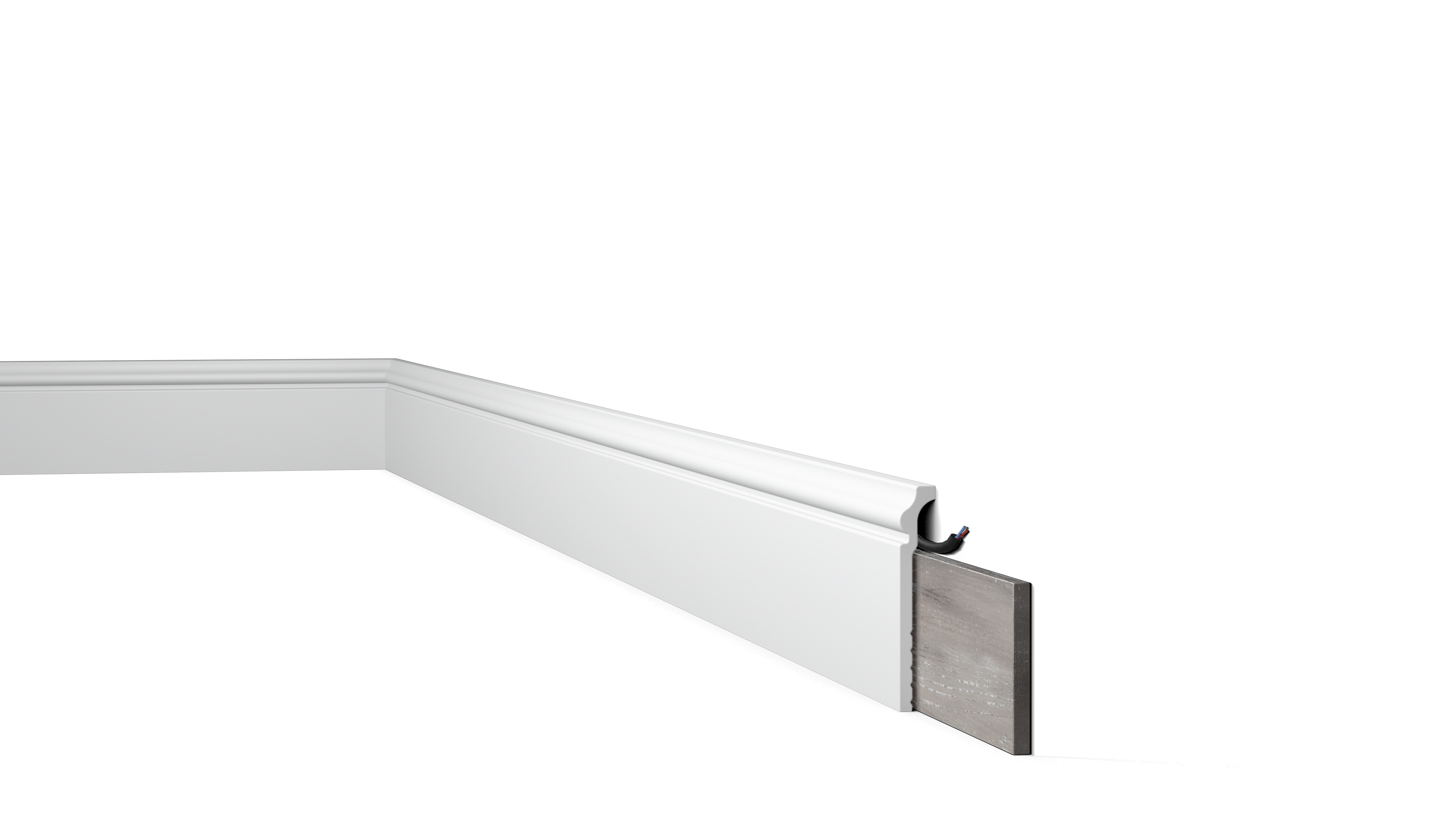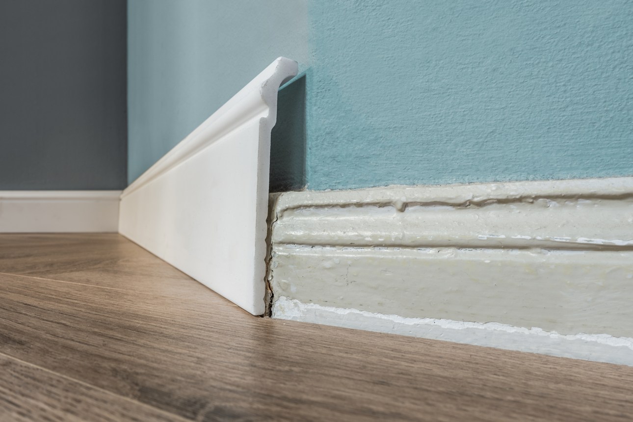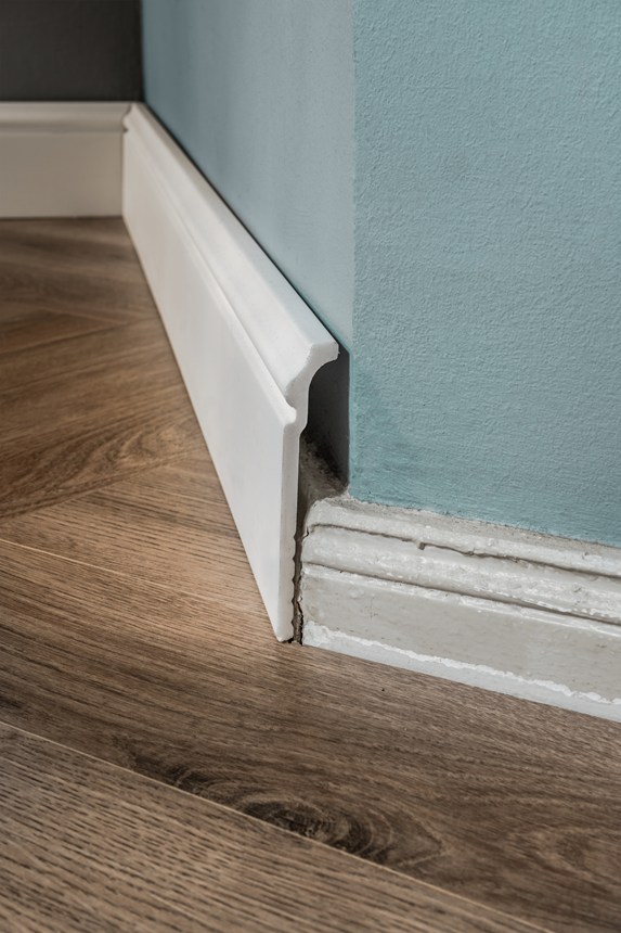 - deckt alte oder beschädigte Sockelleisten ab (Bsp. Keramik oder Holz)