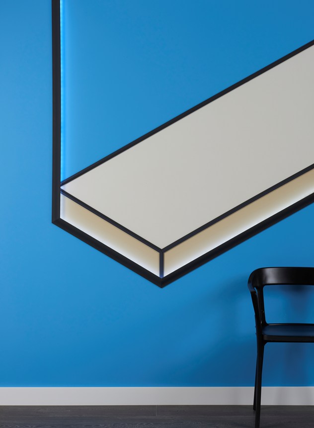 Mit direkter oder indirekter Beleuchtung kombinierbare Decken-, Wand- und Sockelleisten sowie Wanddekoraktionselemente.