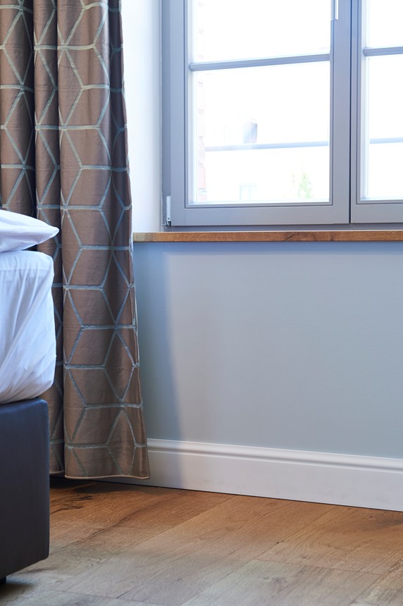 Die Sockelleiste FL2 WALLSTYL® ermöglicht einen glatten, fließenden Übergang zwischen Wand und Boden und verleiht einem Innenraum den letzten Schliff. Dank subtiler Details fügt sich die FL2 Sockelleiste nahtlos in eine Vielzahl von Einrichtungsstilen ein.