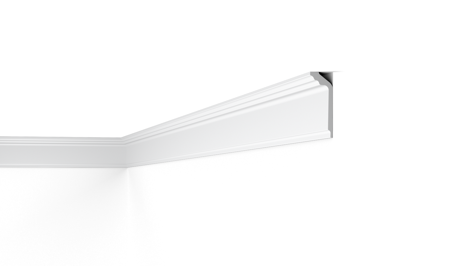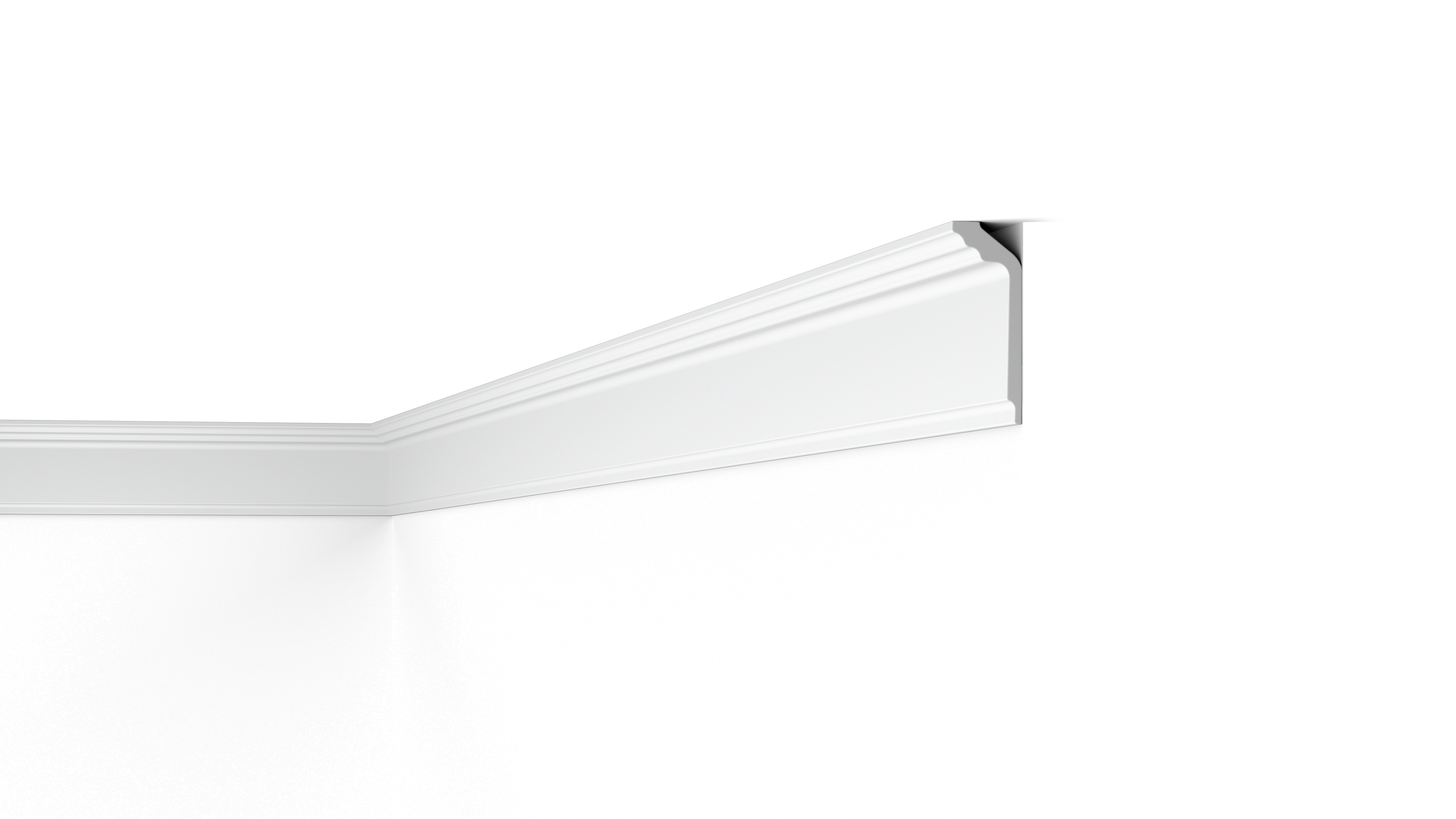 Die Deckenleiste besteht aus hochwertigem und feuchtigkeitsbeständigem Polystyrol, somit ist sie ebenfalls für Feuchträume geeignet. Die GT Deckenleiste bietet Platz, um Kabel, Risse und unvollkommene Übergänge verdecken zu können.