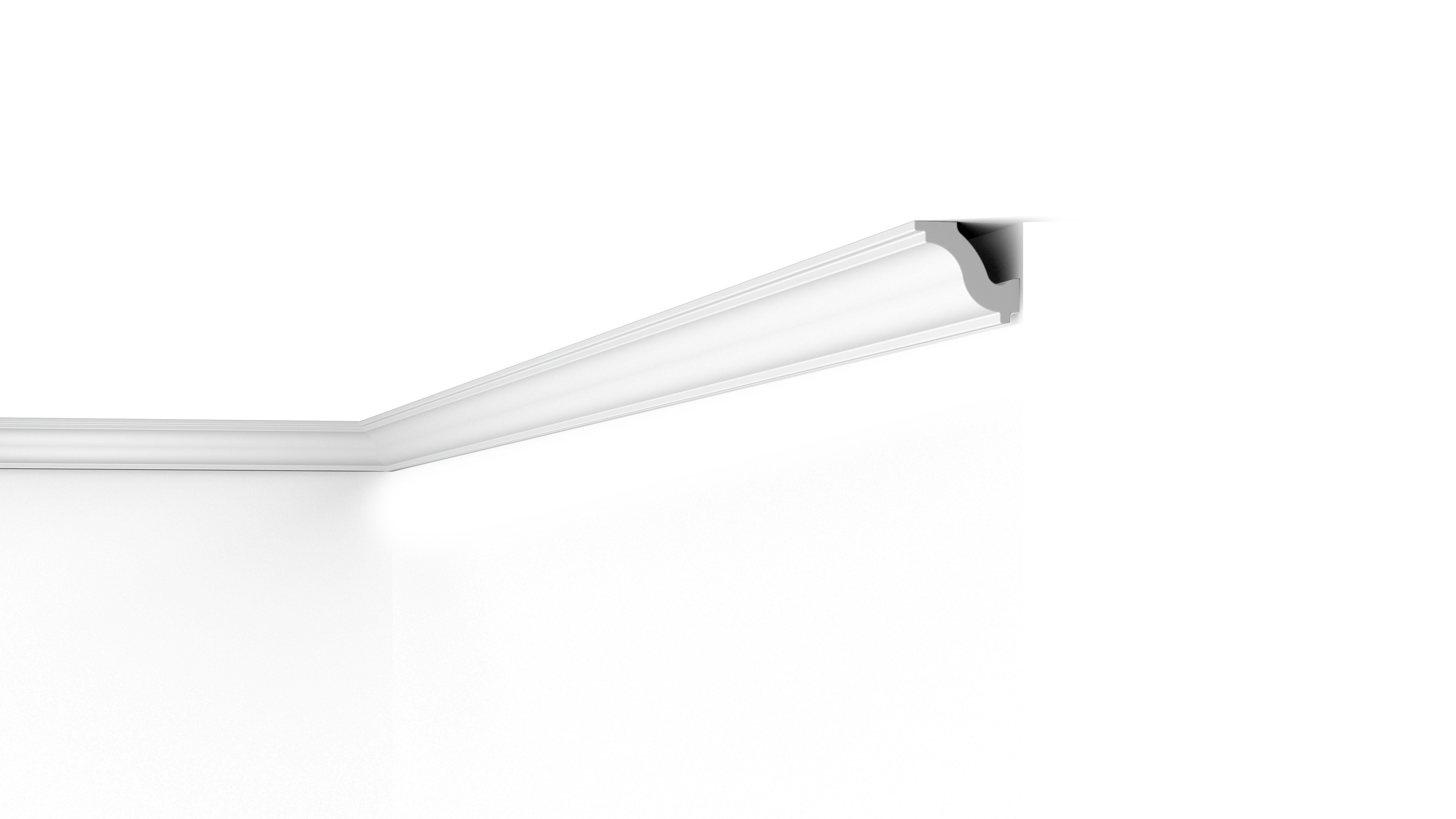 Eine dezente mit einem schlichten Karnies und einem Steg versehene Deckenleiste. Die H NOMASTYL® Deckenleiste bietet eine Schattenfuge und ist ein elegantes und praktisches Gestaltungselement.Sie wird aus Polystyrol gefertigt und ist feuchtigkeitsbeständig, so dass sich H NOMASTYL® auch ideal für Bäder und Küchen eignet.