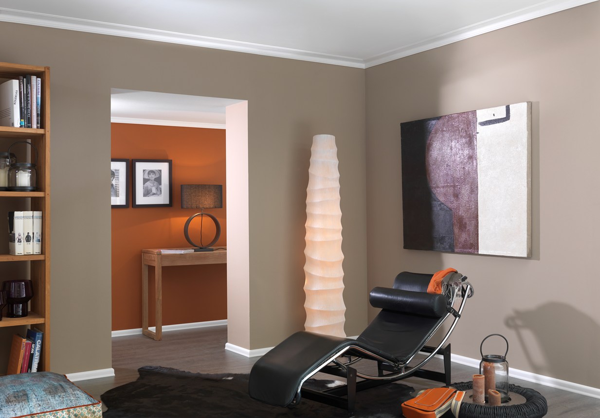 Mit direkter oder indirekter Beleuchtung kombinierbare Decken-, Wand- und Sockelleisten sowie Wanddekoraktionselemente.