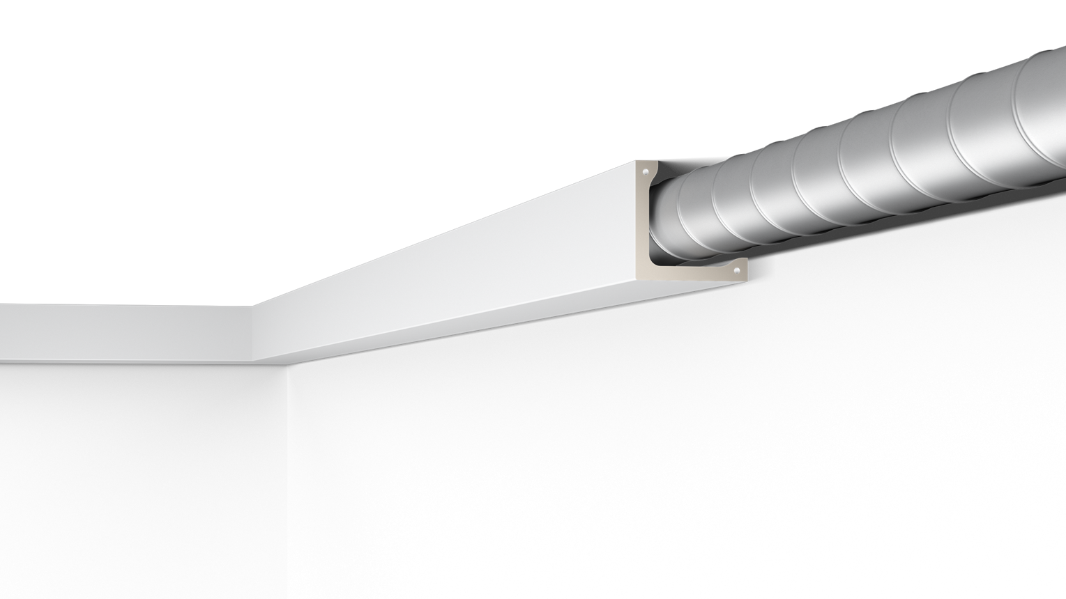Hinter der L4 Leiste ist genug Platz, um Leitungen, direkte LED-Beleuchtung oder auch größere Komponenten wie Lüftungen zu verbergen. Die L4 ist leicht und muss nur aufgeklebt werden. Die L4 ist werkseitig grundiert und muss nur noch endbeschichtet werden.