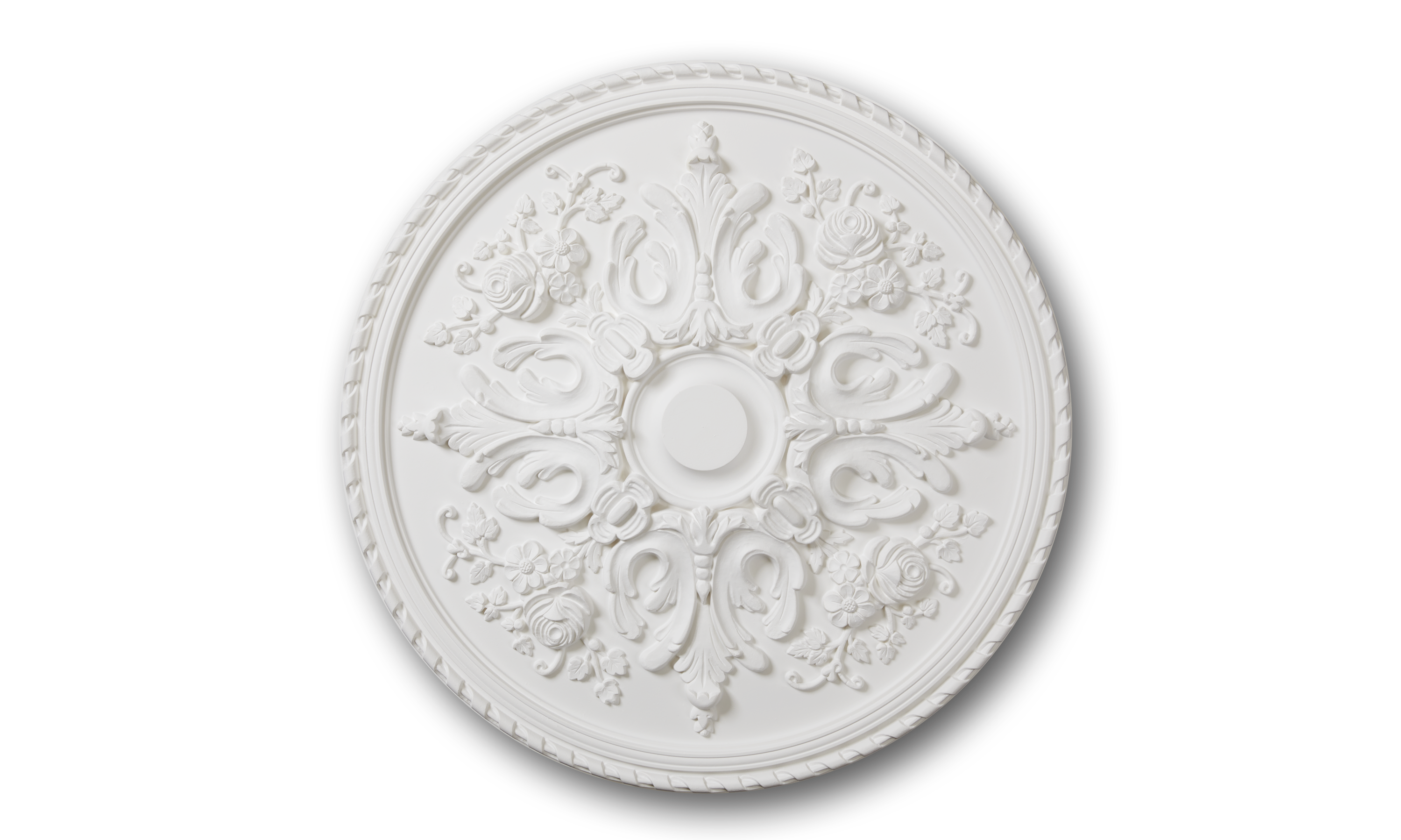 Die R12 ARSTYL® Rosette veredelt augenblicklich jeden Raum und lenkt den Fokus auf die Wand oder Decke. Das aufwendig gestaltete Design Element ist eine einfache Ergänzung, um den Innenraum raffiniert zu verschönern.