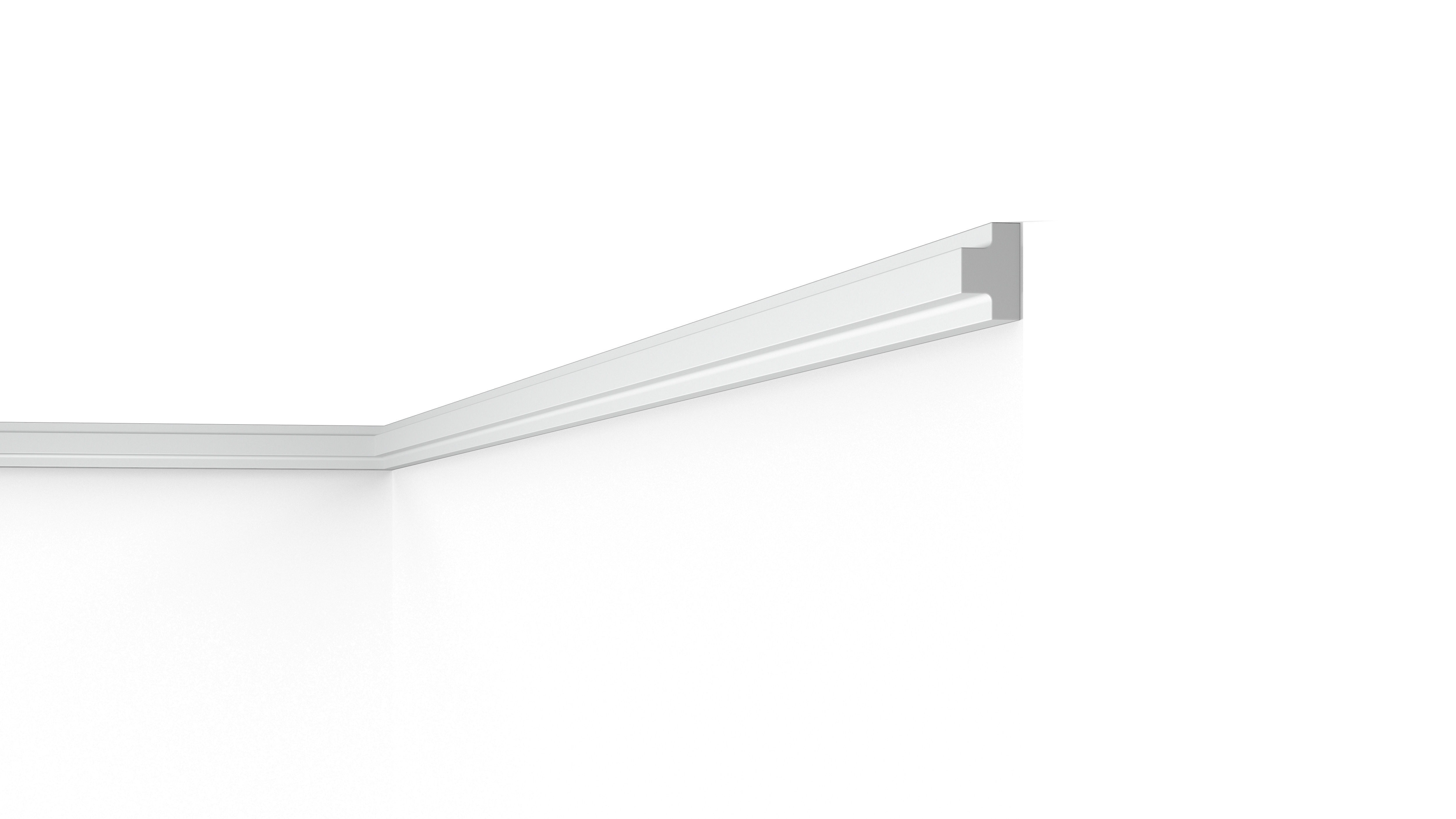 Mit direkter oder indirekter Beleuchtung kombinierbare Decken-, Wand- und Sockelleisten sowie Wanddekoraktionselemente.