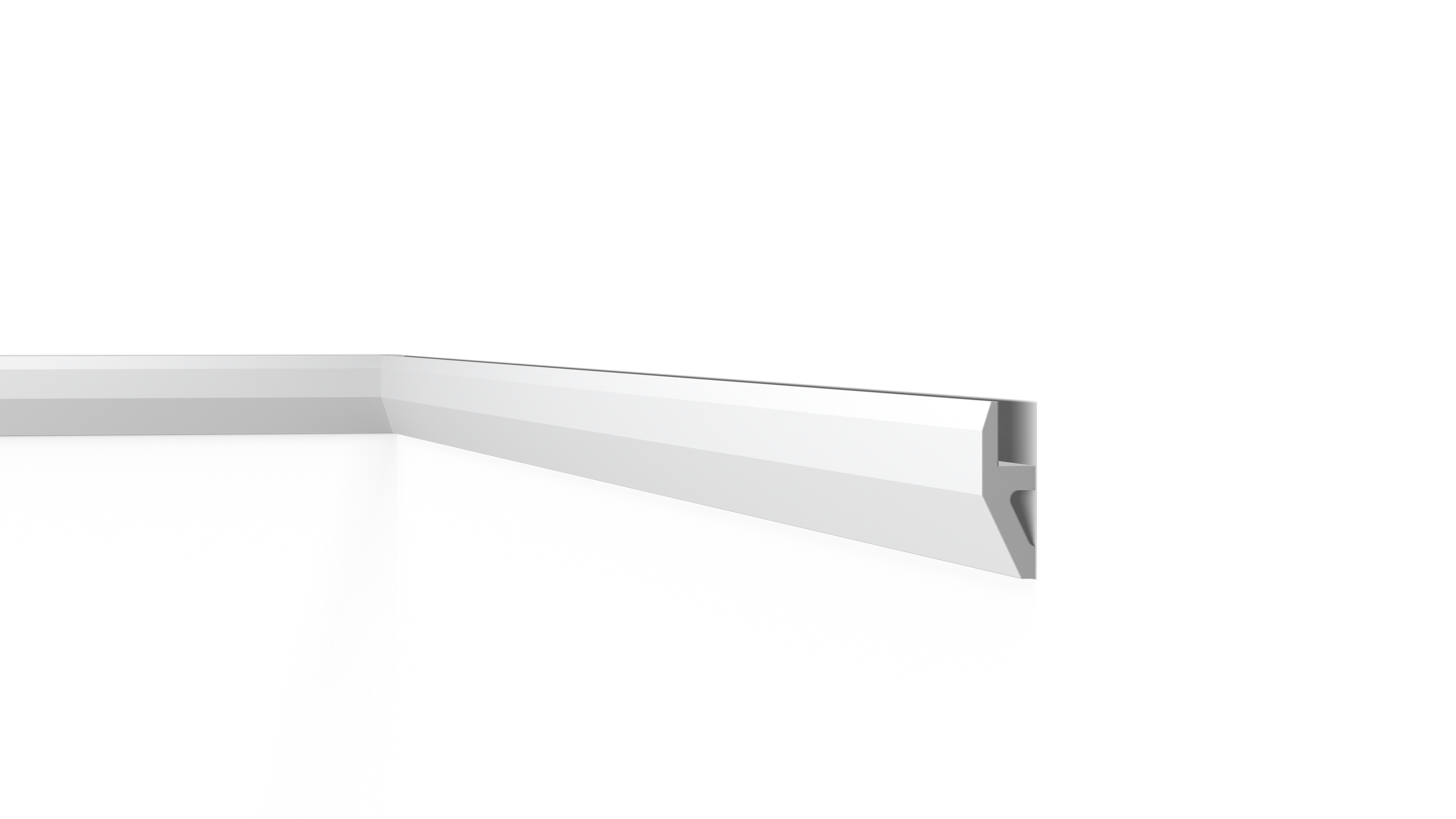 Mit direkter oder indirekter Beleuchtung kombinierbare Decken-, Wand- und Sockelleisten sowie Wanddekoraktionselemente.