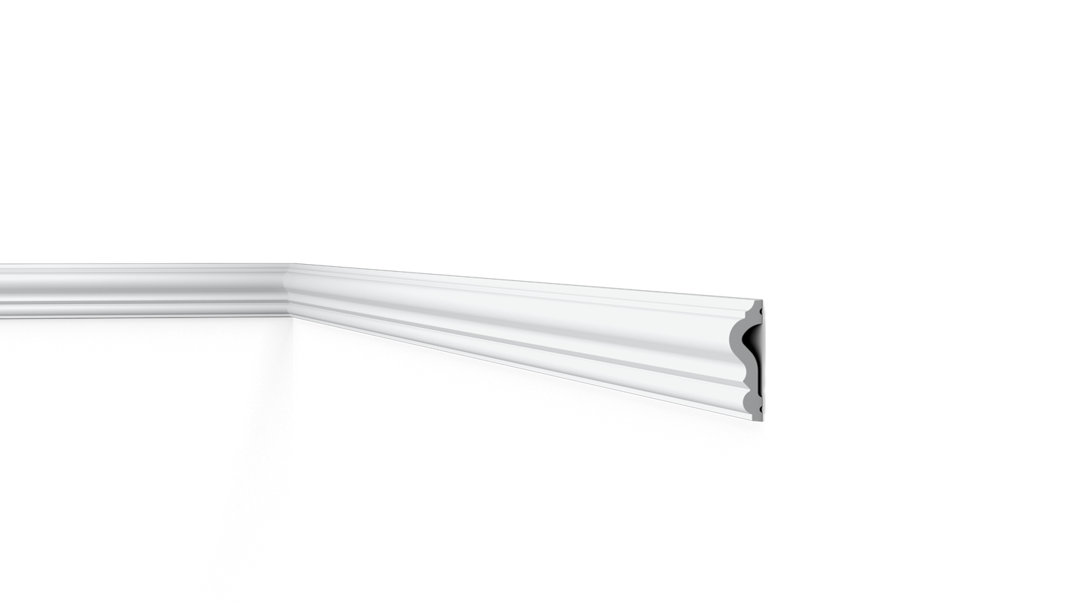 Mit direkter oder indirekter Beleuchtung kombinierbare Decken-, Wand- und Sockelleisten sowie Wanddekoraktionselemente.