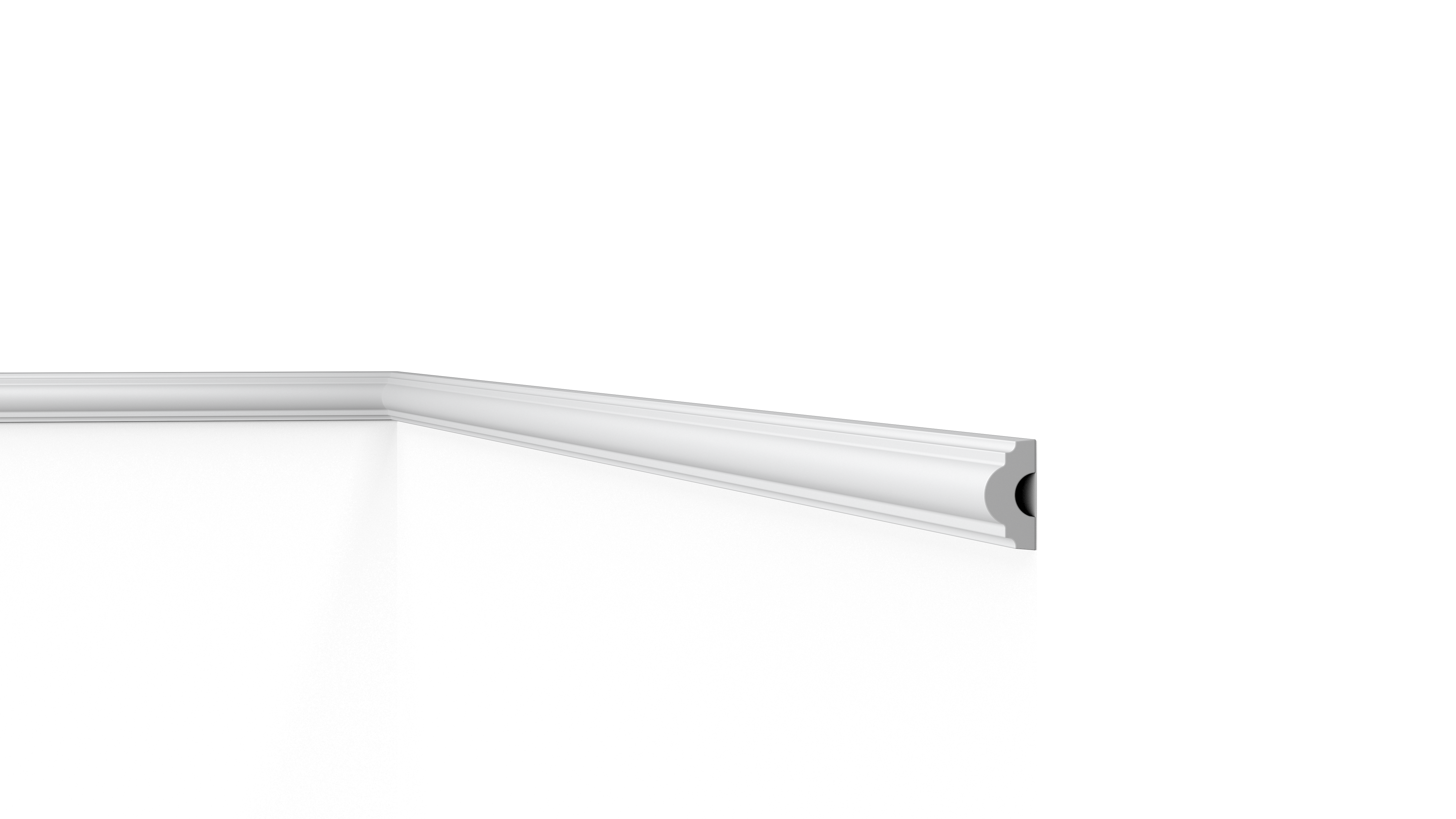 Verwenden Sie die Wandleiste WL7 WALLSTYL®, um maßgeschneiderte Wandfelder oder Einrahmungen zu schaffen. Das schlichte Design ist nie aufdringlich. Die klaren Linien und die abgerundete Form der Wandleiste ergeben ein vielseitiges Profil für zahlreiche Anwendungen.