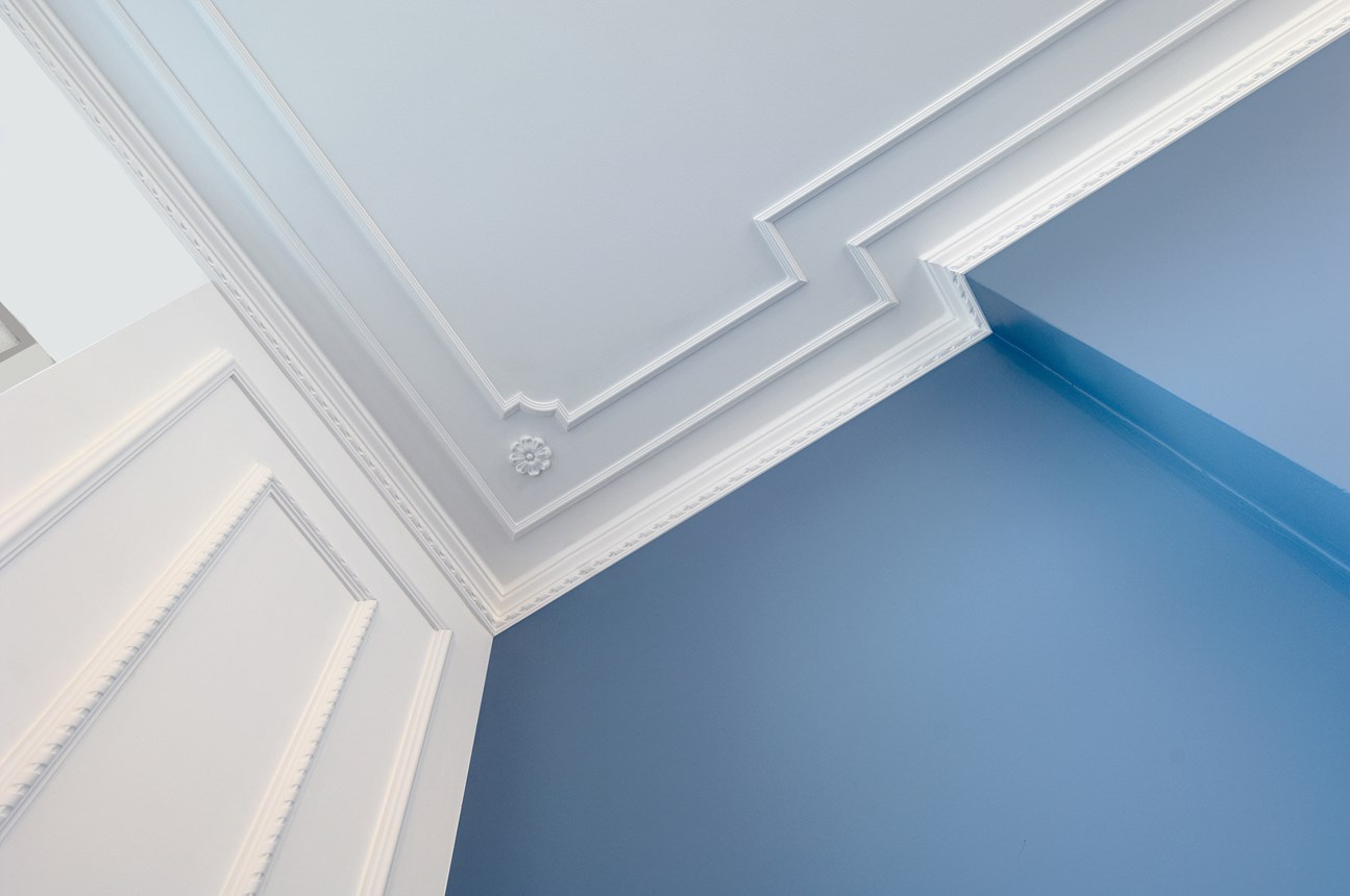 Deckenleisten, die einen stilvollen Übergang von der Decke zur Wand schaffen. Rosetten, die Ihrem Interieur einen anderen Stil