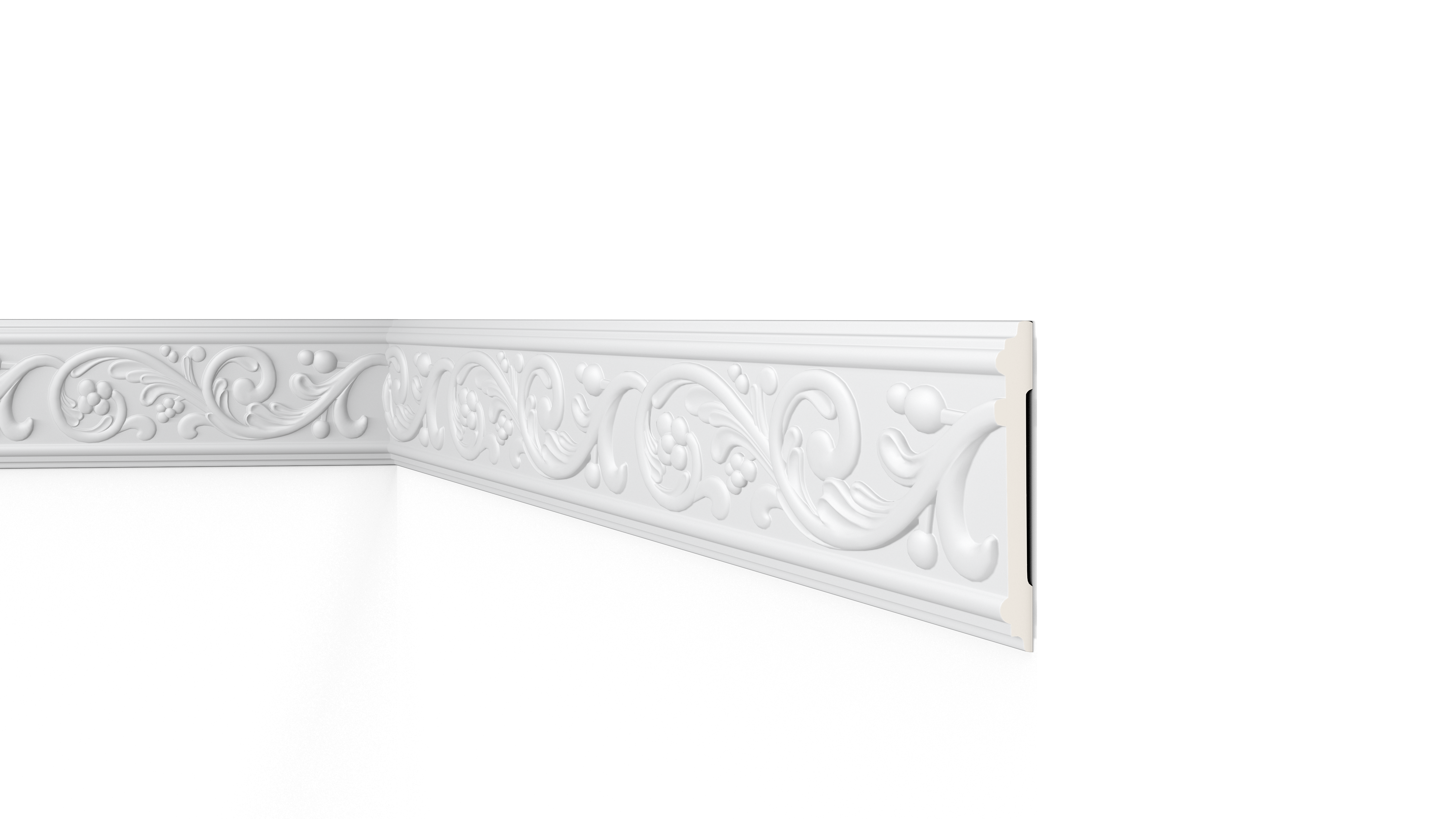 Die verzierte Z12 ARSTYL® Wandleiste punktet mit ihrer auffälligen Gestaltung. Ornamentale Details rücken ein traditionelles Interieur in den Fokus. Für moderne Einrichtungsstile bildet die Z12 hingegen einen Stilbruch und fällt umso mehr auf. Das florale Design ist durch einen typischen, klassischen Naturstil geprägt.