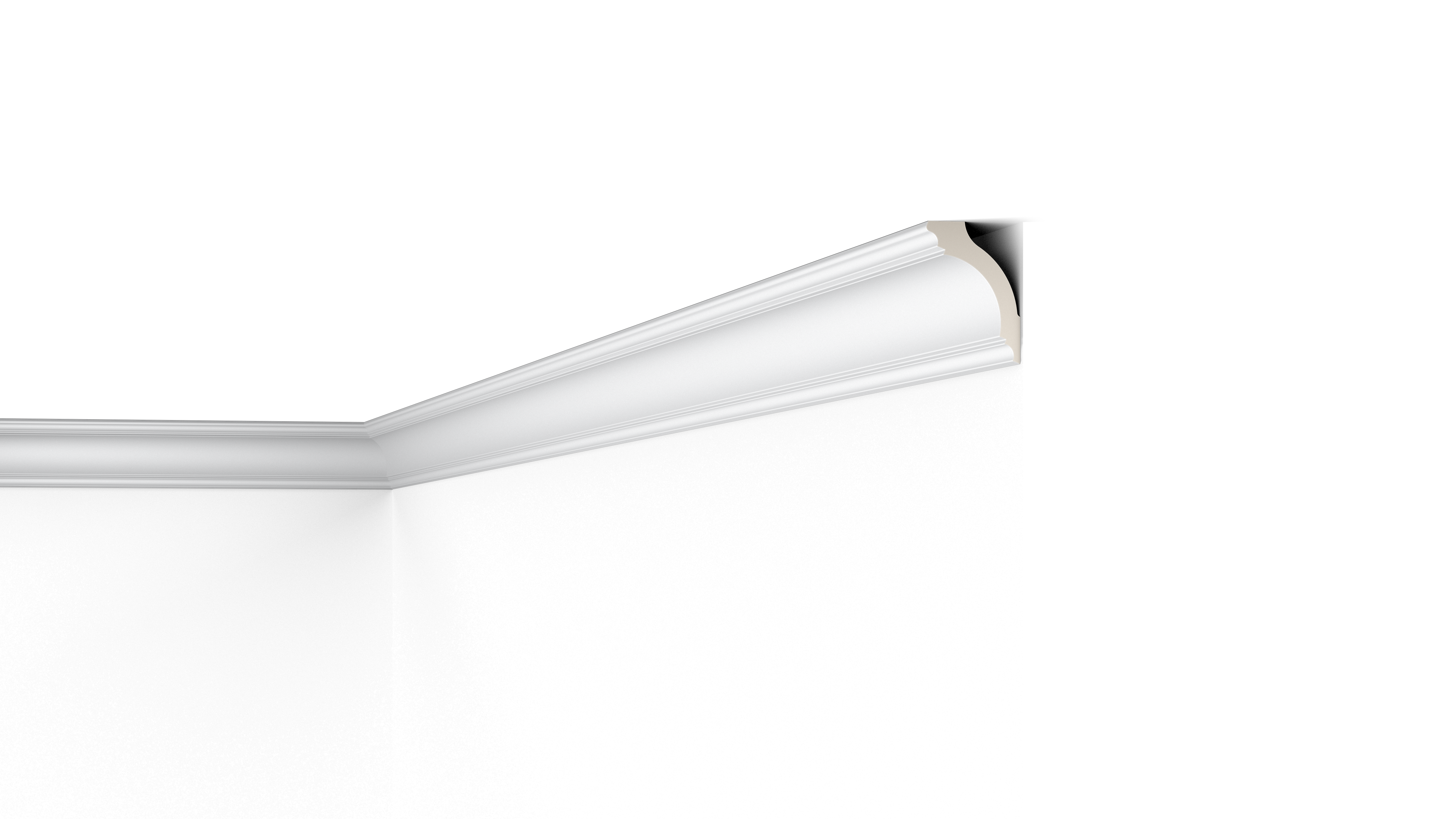 Dank der konkaven Form der Deckenleiste Z1220, lässt sich der Übergang zwischen Wand und Decke, auch bei kleineren Raumhöhen besonders harmonisch gestalten. Durch das minimalistisch gehaltene Design eignet sich die Deckenleiste sowohl für moderne als auch für klassische Einrichtungsstile. Die Z1220 kann auch mit LED Clips bestückt werden.