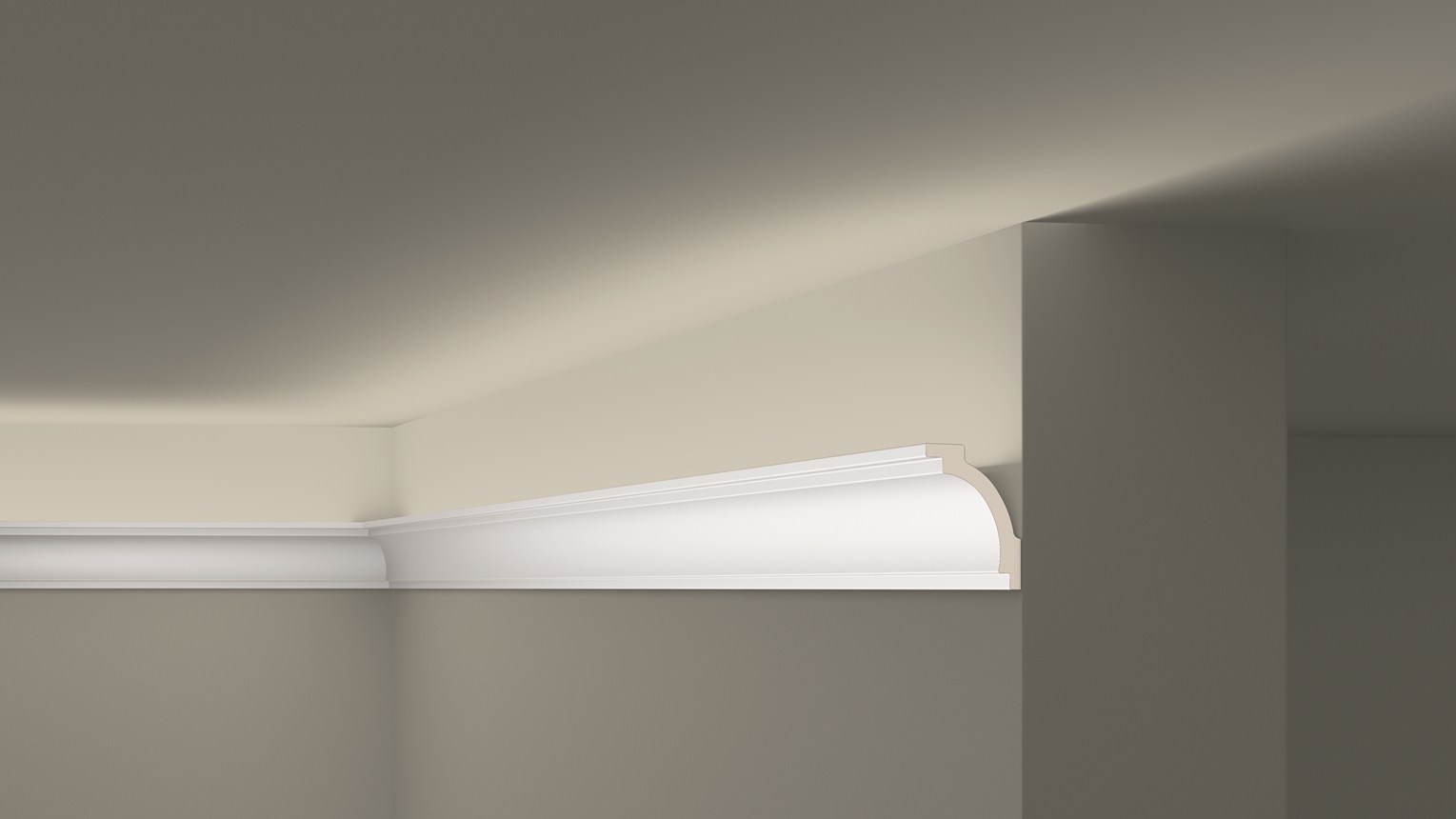 Die elegante Z16 ARSTYL® Deckenleiste verspricht einen sanften Übergang zwischen Wand und Decke. Sie kann ebenfalls in Kombination mit Licht angebracht werden, was mehr Wärme und Wohnlichkeit schafft. Ob allein oder als Profil für indirekte Beleuchtung, im Privat- oder Objektbereich - diese Deckenleiste sorgt für den perfekten Abschluss. Die Z16 passt zu allen Einrichtungsstilen. Sie ist auch in flexibler Ausführung erhältlich und ermöglicht eine passgenaue Verarbeitung, um den Ansprüchen jeden Raumes zu entsprechen.