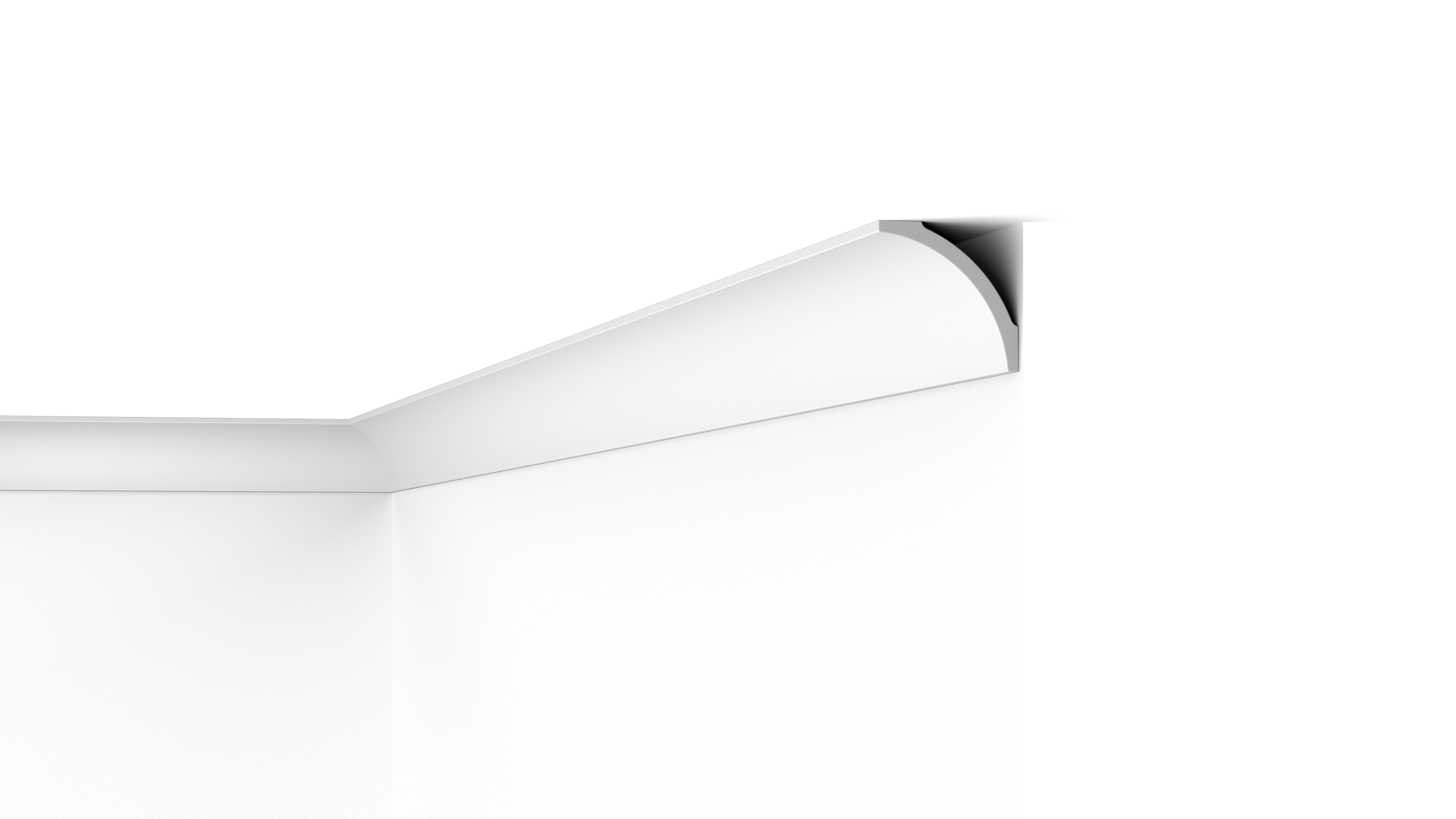 Incorporate a smooth, rounded cornice into an interior for a simplistic finish. A curved cornicesuch as the B8 NOMASTYL® creates a seamless transition between wall and ceiling and adds interest to a room’s shape. Polystyrene is moisture resistant and therefore an ideal material for humid bathrooms, kitchens and bars.