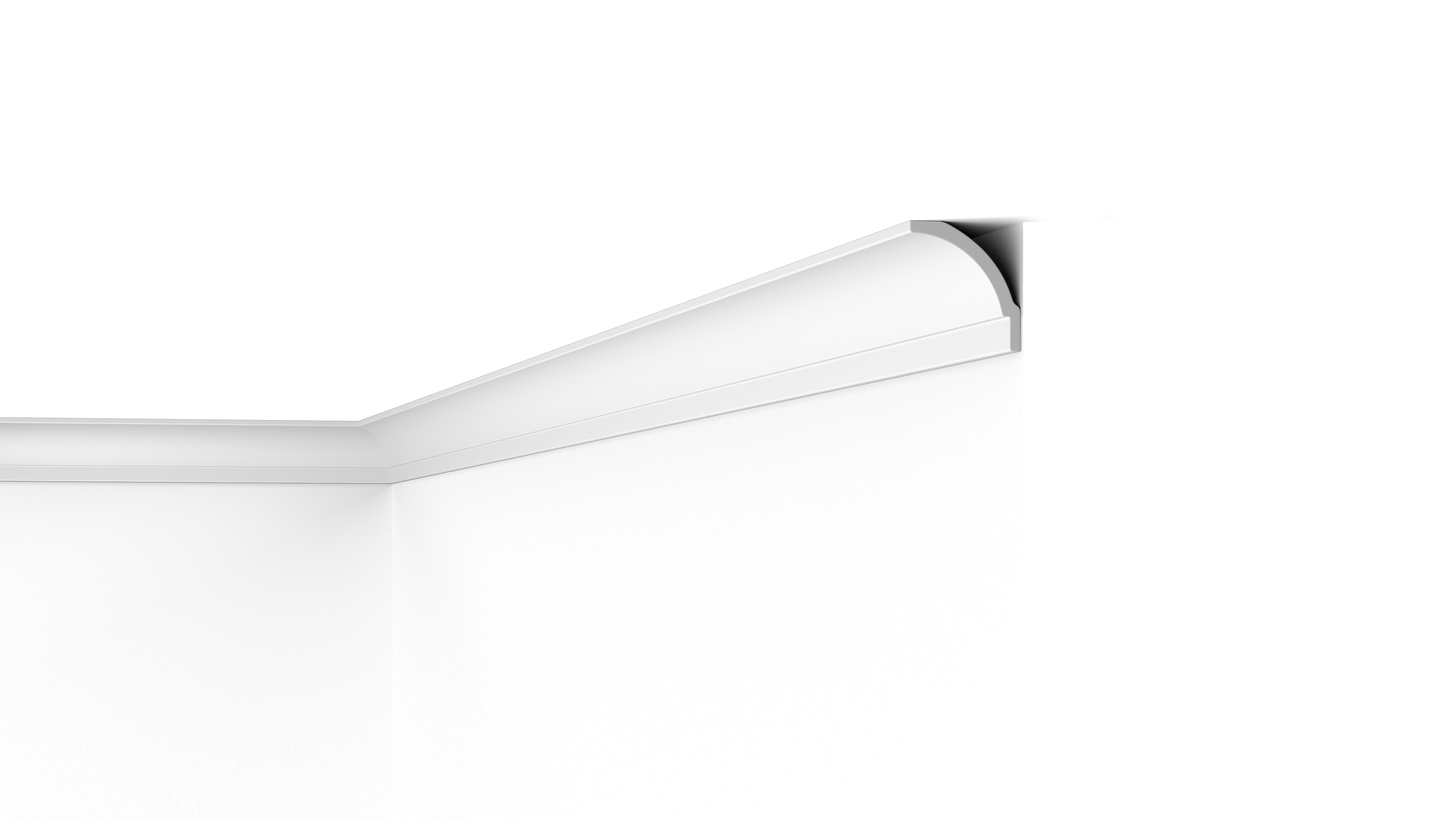 Behind the BW1 moulding is enough space to conceal unsightly wires, cracks and imperfect transitions. Installing the BW1 coving simply requires glueing the lightweight mouldings in place. The BW1 cornice is also fully recyclable.