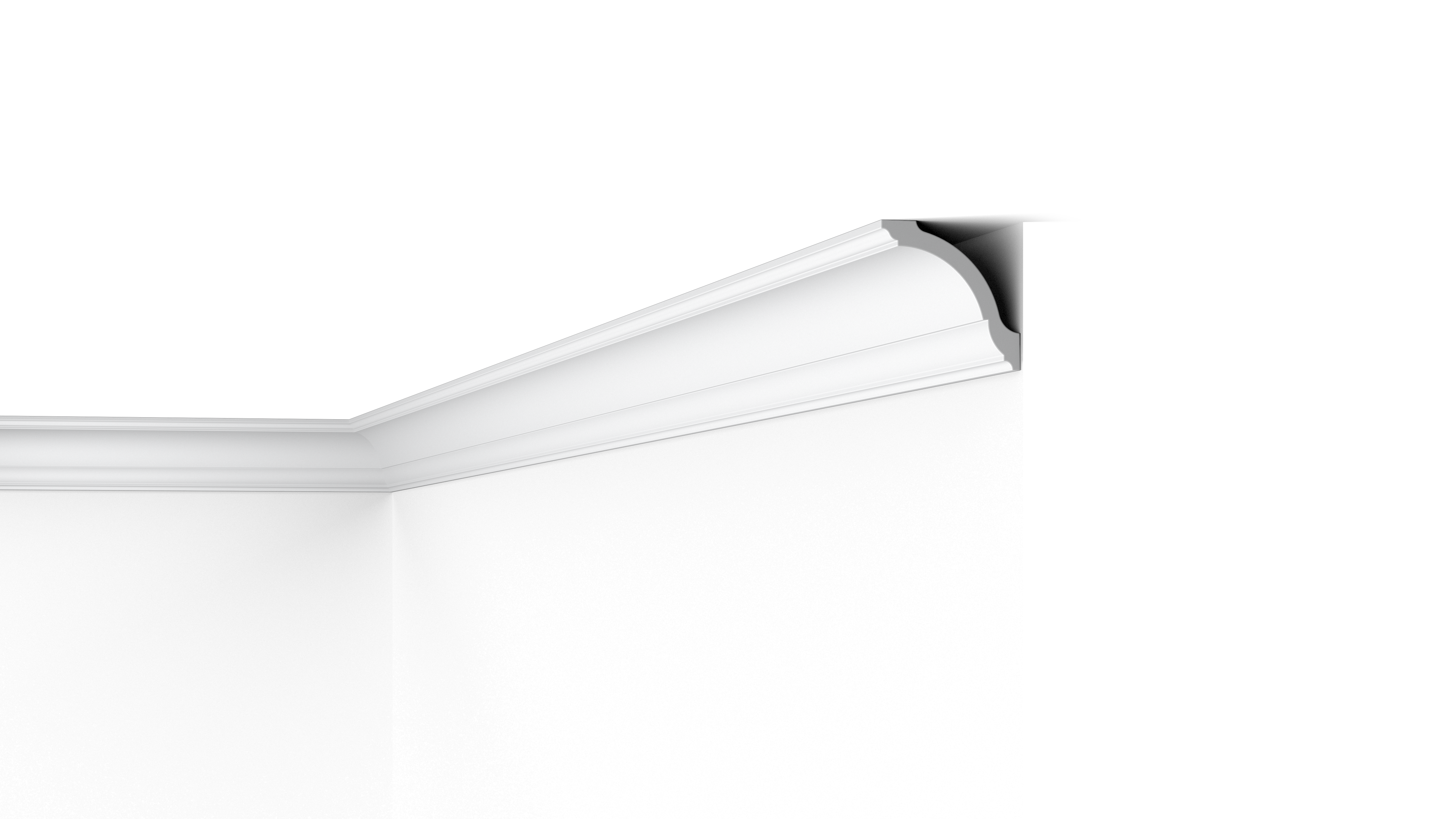 The elegant profile of the GO NOMASTYL® coving creates a smooth transition between wall and ceiling. A slightly rounded profile provides dimension to a space, alongside the texture from linear detail.
