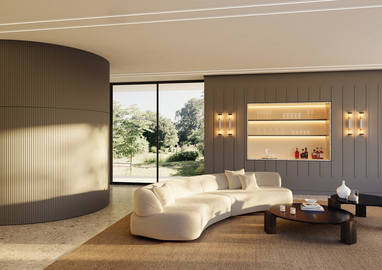 Cornices, picture rails, baseboards, and wall decorations to combine with direct or indirect lighting for a cozy atmosphere.
