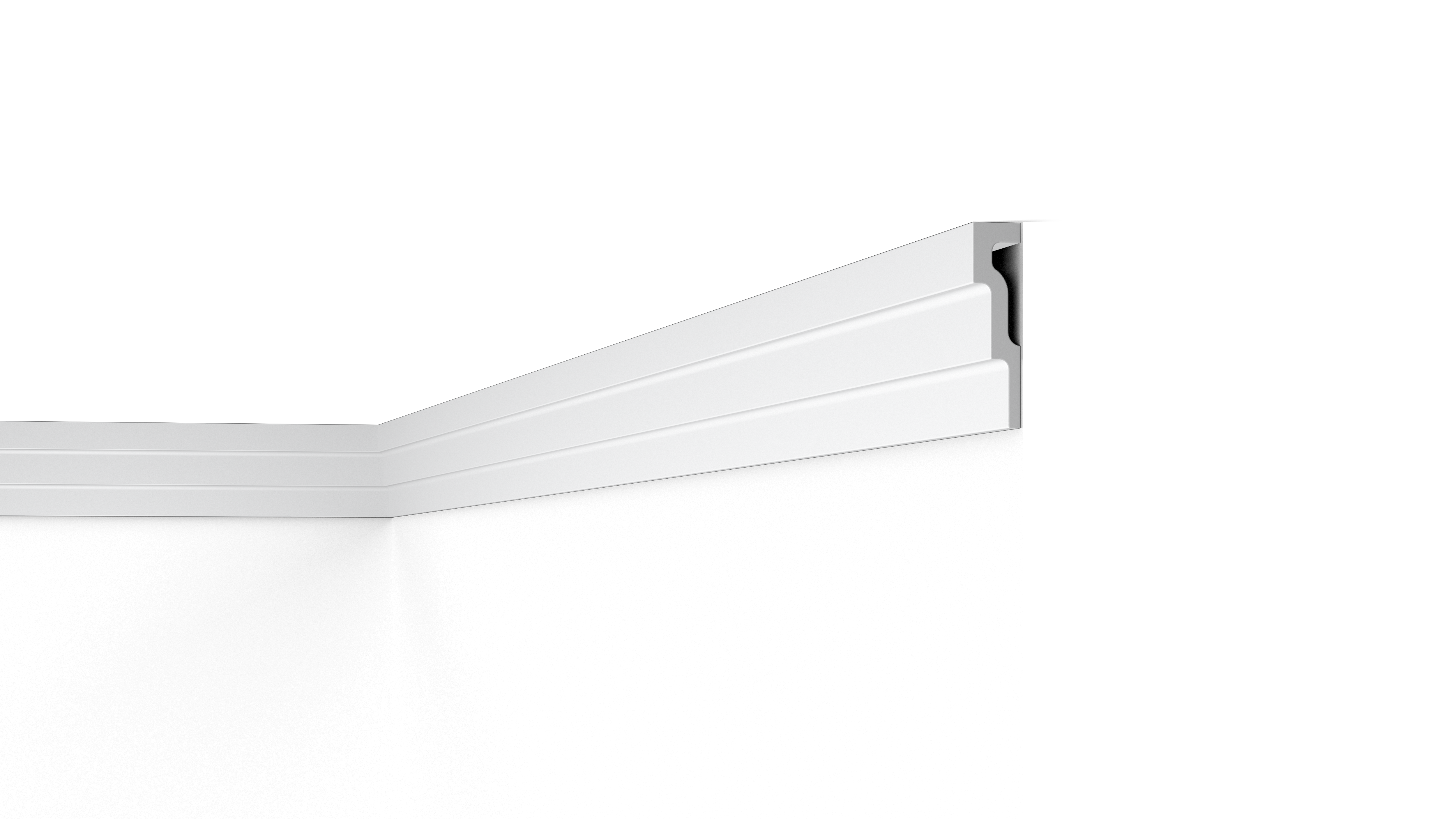 To install the lightweight mouldings, simply glue each section in its final position. Behind the M1 cornice is a small gap for concealing wires, cracks and imperfect transitions. The M1 cornice is also fully recyclable.