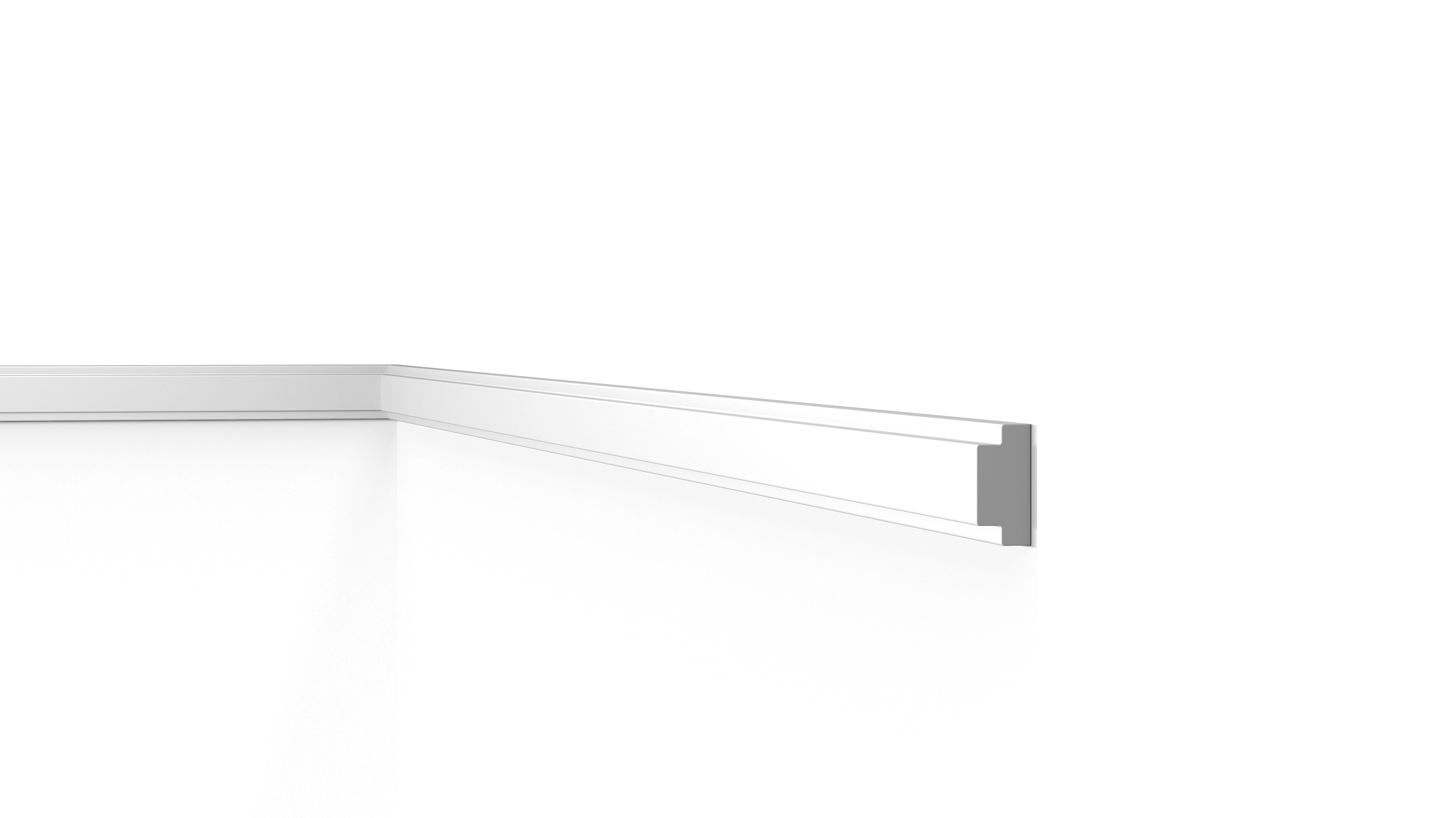 The WALLSTYL® minimalist chair rail WL10 can be used as an elegant connection between several wall panels. It can be combined with the skirting FL11 and the wall panels Canelé S, Canelé L, Dorique and Scuretto to create unique 3D coverings or placed individually to form frames. Sharp, graphic angles with a bold geometric design create a play of light and shadow. The WL10 can also be used on its own to create frames or other decorative designs.