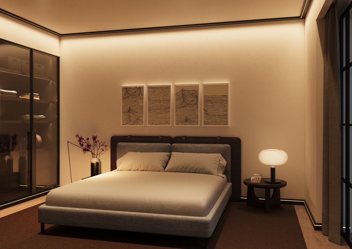 Skirtings with indirect lighting introduce a soft, floating glow across spaces, visually widening rooms and making surfaces feel lighter. This delicate halo enhances architectural features and removes harsh contrasts, enabling the creation of calm and comforting interiors.